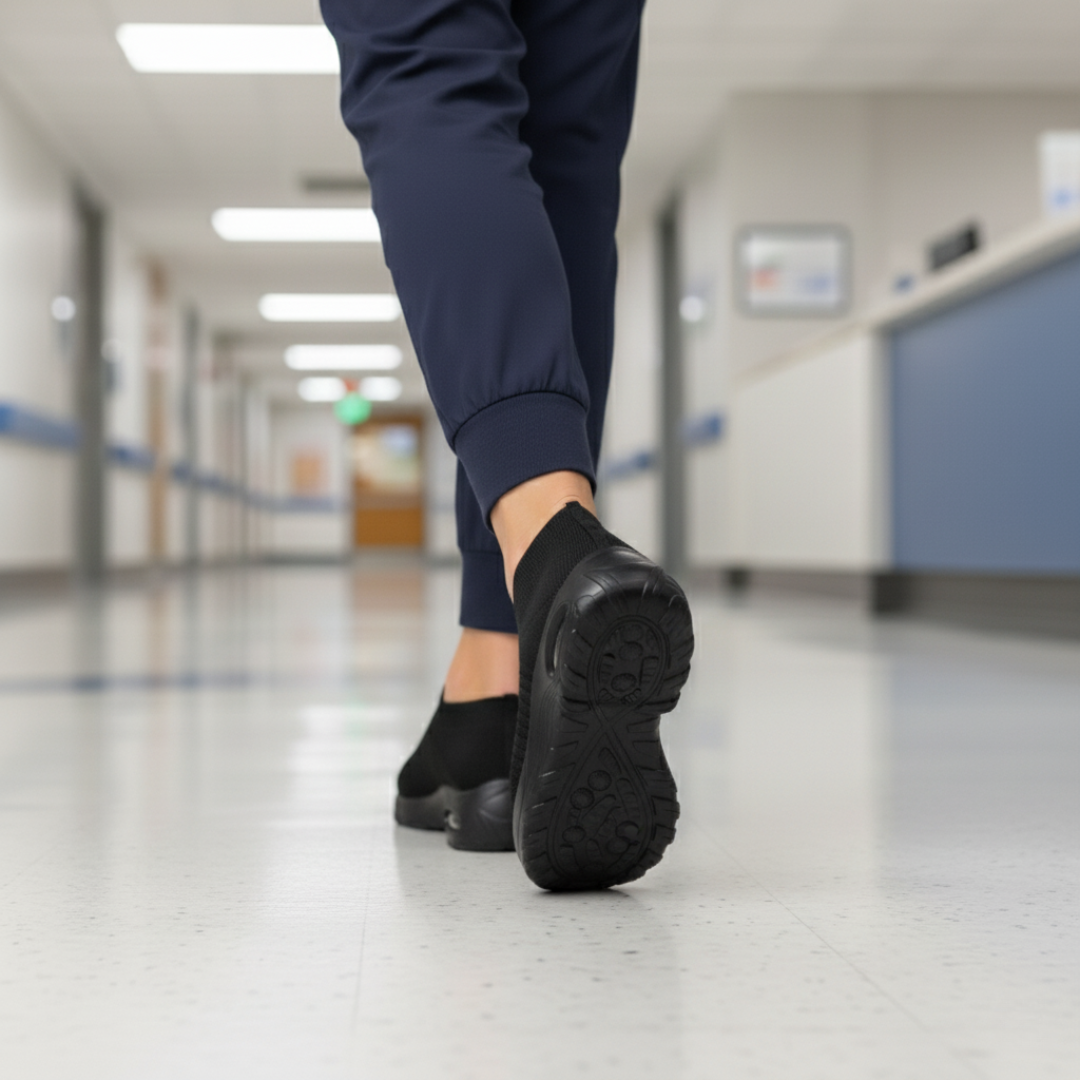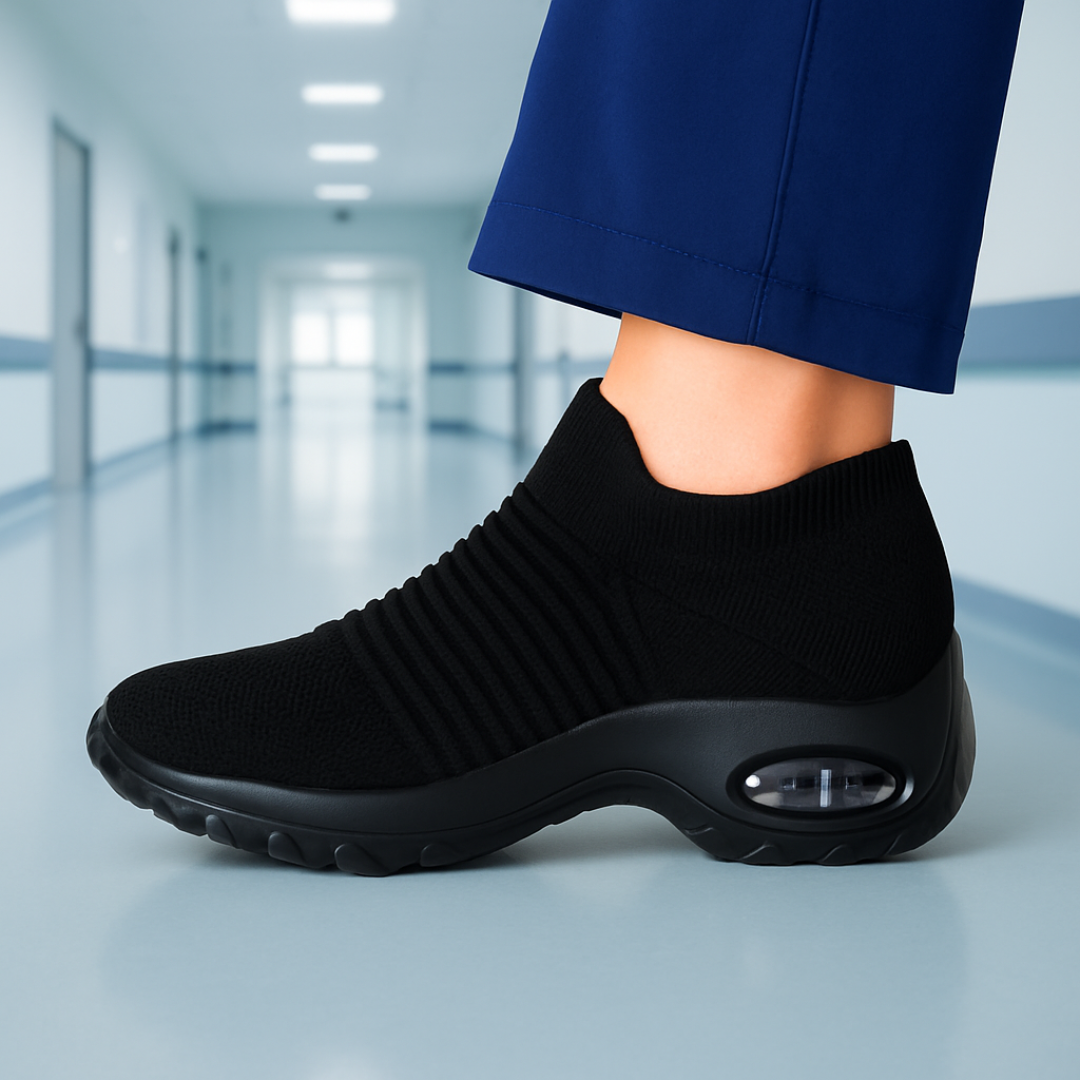 Step 3: Wear your No Lace Nursing Orthopedic Shoes throughout your shift for lasting relief, comfort, and improved recovery. Enjoy the cloud-soft comfort.